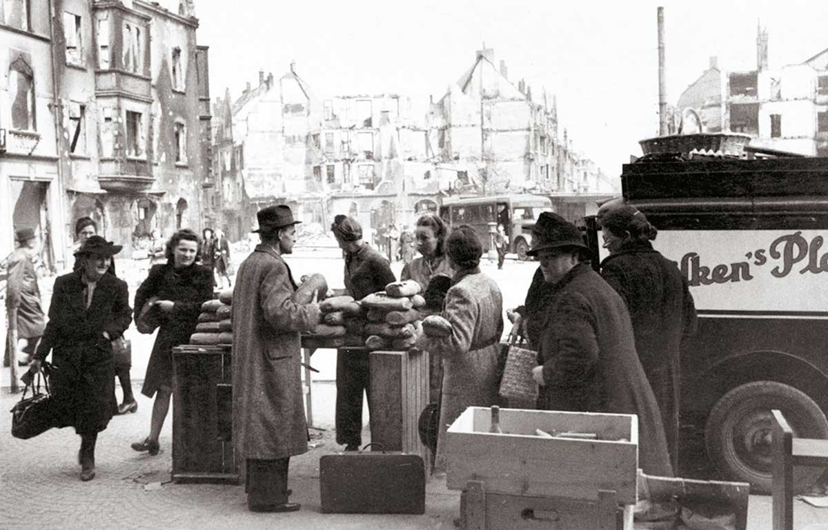 Die Versorgung der Zivilbevölkerung mit Nahrungsmitteln und Gebrauchsgegenständen zählte zu den zentralen Aufgaben des NS-Staates. Daher wurde bereits vor dem Überfall auf Polen ein Rationierungssystem eingeführt. Die hierzu ausgegebenen Marken konnten jedoch nicht immer eingelöst werden. Die Zerstörung von Geschäften und ein schrumpfendes Warenangebot führten zu langen Schlangen und improvisierten Verkaufsstellen, aber auch zu einem schnell wachsenden Schwarzmarkt.
