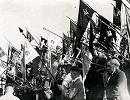 Als der „Bund Deutscher Bibelkreise“ im Sommer 1933 sein 50-jähriges Bestehen feierte, trafen sich tausende seiner Mitglieder in der Senne bei Bielefeld. Stolz schwenken sie ihre Verbandsfahnen - aber auch Hakenkreuzflaggen waren zu sehen.