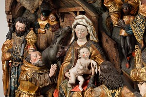 Abb.: Detailansicht aus: Anbetung der Heiligen Drei Könige, Meister Arnt von Kalkar und Zwolle, Museum Schnütgen, Foto: RBA