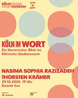 In der neuen Ausgabe von „KÖLN IM WORT“ begegnen sich zwei Autor*innen, deren Schreiben auf je eigene Weise mit Erinnerung, Rhythmus und Sprache arbeitet. Anhand der Dauerausstellung des Museums haben sich Nasima Sophia Razizadeh und Thorsten Krämer auf eine Reise durch die Kölner Stadtgeschichte begeben und ihre Gedanken in eindrücklichen Texten festgehalten. Freut euch mit uns auf einen spannenden Abend!