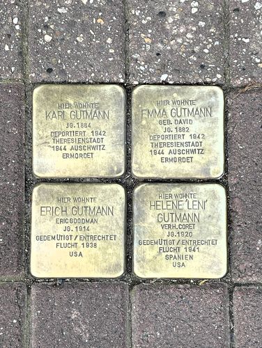 | Biografie | Von der vierköpfigen Familie Gutmann überlebten allein Erich und Helene Gutmann. Ihnen gelang die Flucht in die USA. Die Spur ihrer Eltern Karl und Emma hingegen verliert sich 1944 im Vernichtungslager Auschwitz-Birkenau.