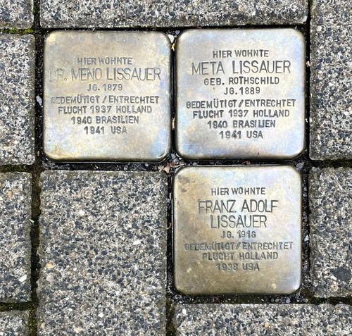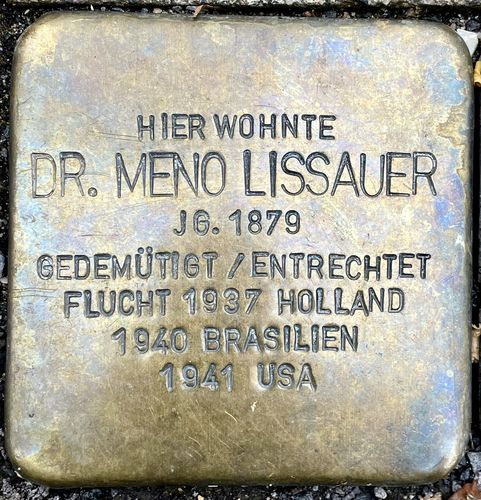 Das Unternehmen der Gebrüder Lissauer expandierte in den 1920er Jahren weit über die Grenzen Deutschlands hinaus und hatte Zweigstellen in Wien, Amsterdam, London und New York. Meno Lissauer engagierte sich in der jüdischen Gemeinde und war Ehrendoktor der TH Aachen. Nach der Machtübernahme der Nationalsozialisten im Januar 1933 geriet das Firmenimperium zunehmend unter Druck, und er musste Teile davon verkaufen. 1937 verlegte Meno Lissauer den Firmensitz und seinen Wohnsitz nach Amsterdam. 1940 floh er mit seiner Familie nach Brasilien und emigrierte 1941 nach New York. Dort starb er am 27. Mai 1958. |