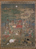 Abb: Der Eingang des Buddha in das vollkommene Nirvâna, Hängerolle, Japan, datiert 1392 © Rheinisches Bildarchiv, Köln