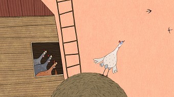Ein Huhn soll Eier legen. Doch oben kreisen die Schwalben und plötzlich will das Huhn fliegen. Ob das klappt?