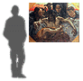 Kreuzabnahme „Danach bat Joseph von Arimatäa der ein Jünger Jesu war (...), den Pilatus, daß er den Leichnam Jesu vom Kreuz abnehmen dürfe. Und Pilatus erlaubte es. Sie kamen also und nahmen den Leichnam Jesu ab (...) und banden ihn samt Spezereien in Leinenbinden, wie es bei den Juden Begräbnissitte ist.“ Die Kreuzabnahme - es ist ein Augenblick voll von Schmerz, Verzweiflung und Trauer, den uns Lovis Corinth vor Augen führt. Der Bildtitel aber, den der Künstler wählte, er ist irreführend, denn eigentlich stellt er einen Moment dar, der zwischen der Kreuzabnahme und der Herrichtung des Leichnams Jesu für die Beisetzung liegt. In der Mitte, schwarz gekleidet, ist Maria, die Mutter Jesu dargestellt. Als alte Frau mit herben Gesichtszügen starrt sie versteinert und stumm vor sich hin. Sie faßt unter Jesu linken Arm, um so den Körper des Toten zu stützen. Ihr schwarzer Schleier bedeckt das Haupt ihres Sohnes und stellt so zudem eine kompositorische Verbindung zwischen ihr, dem Toten und Joseph von Arimatäa, der links im Bild zu sehen ist, her. Joseph hatte zusammen mit Nikodemus den Leichnam vom Kreuz abgenommen. Auch Joseph stützt den Leichnam und wie Johannes der Evangelist, rechts im Bild, wagt er nicht den Leichnam mit der bloßen Hand zu berühren. Das leinene Leichentuch liegt zwischen Hand und totem Körper. Entsetzt voll Bestürzung hält sich Joseph das Leichentuch vor den Mund. Johannes hingegen blickt mit großen, fast kindlichen, Augen so fragend ungläubig auf den Erlöser, als ob er das Geschehen noch nicht begriffen hätte. Maria Magdalena mit gelösten roten Haaren, nacktem Oberkörper und entblößter Brust schmiegt sich eng an Jesus. Ihr vitaler Leib umfängt den toten Körper des Mannes, der ihr den Lebenswandel als Dirne verzieh. Es entsteht eine fast erotische Innigkeit, die dadurch, das Jesus gnädig auf Magdalena niederzuschauen scheint, noch unterstützt wird. Und selbst in der Pinselführung des Malers spiegelt sich diese Verbindung wider: Magdalenas und Jesu Körper sind jeweils mit diagonalen Pinselstrichen gemalt, die sich so bei den anderen Personen nicht finden. Hinzu kommt, daß Jesu ausgebreitete Arme Magdalena zu umfangen scheinen. Seine im Tode verkrampften Hände mit den blutigen Wundmalen stehen jedoch dazu in offenem Gegensatz, rufen dem Betrachter ins Gedächtnis, daß Jesus tot ist. Corinth hat kein eindeutig frommes Bild geschaffen. Es ist ein Bild, das Fragen, das Zweifel aufwirft. Es verunsichert. Unsere Kreuzabnahme ist ein Werk des 37jährigen Malers und war erstaunlicherweise das erste Bild, für das er einen Käufer fand. Es befindet sich heute noch im Besitz der Familie des damaligen Käufers und wurde unserem Haus als Leihgabe zur Verfügung gestellt. An diesem Werk zeigt sich auch eine der Vorlieben des Malers: die Darstellung nackter Körper, die oft, wie auch bei unserer Kreuzigung, in unerwarteten Kompositionen dargestellt werden.