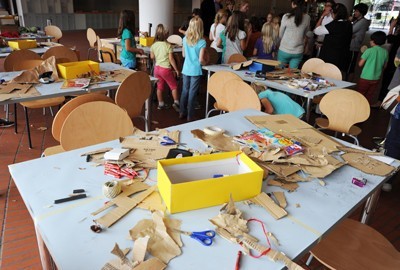 Und habt ihr schon einmal ein Bild gesehen, das ganz aus Glas besteht? Wir zeigen euch ein Kunstwerk mit bunten Vögeln, das Stück für Stück aus Glas zusammengesetzt wurde. Doch irgendwas passt hier nicht zusammen! Löst das Rätsel um die bunten Vögel und probiert euch gemeinsam beim Zusammensetzen von Glasstücken zu Bildern aus. Auf Leuchttischen könnt ihr die Glasbilder zum Strahlen bringen. Mit im Gepäck haben wir auch eine große Auswahl an Papiersorten und Washi-Tape aus denen ihr als Gruppe ein großes gemeinsames Bild Stück für Stück zusammen setzten könnt.