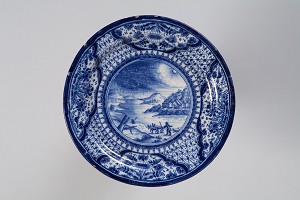 Teller mit Flusslandschaft, Nürnberg, Bemalung von Adam Schuster, datiert 6. März 1719, Foto: Rheinisches Bildarchiv Köln/Marion Mennicken