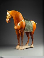 Foto: Figur eines Pferdes mit langer Mähne, China, Tang-Dynastie (618-907), 8. Jahrhundert, ©: RBA Köln/Mario Mennicken