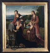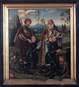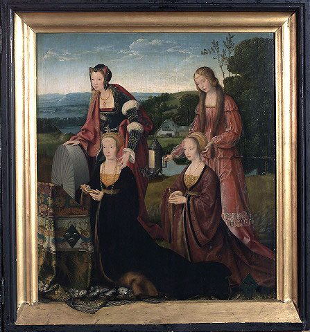Vom Hacqueney’schen Hof am Neumarkt (s. Bild der Woche XX) hat sich praktisch nichts erhalten – mit Ausnahme eines der wichtigsten Altäre Kölns. Nicasius Hacqueney hatte für seine Hauskapelle einen Altar in Auftrag gegeben, der dort bis 1809 verblieb. Dann wurde er von den Erben an die Brüder Boisserée verkauft. Schon 1802 hatte Ferdinand Franz Wallraf einen ebenfalls von der Familie Hacqueney gestifteten Marientod aus der ehemaligen Stiftskirche St. Maria im Kapitol erhalten. Die Brüder Boisserée schätzen ihr eigenes Bild für weniger wertvoll, hielten es für eine Studie zum erst zehn Jahre später vollendeten „Hauptwerk“ und tätigten 1810 mit Wallraf ein Tauschgeschäft – er erhielt die frühere, kleinere Version sowie 19 weitere Gemälde. Das heute noch in Köln befindliche Werk ist monogrammiert und mit dem Wappen der Antwerpener Lukasgilde versehen. Früher war er mit „1515“ datiert. Joos van der Beke, genannt Joos van Cleve (d. Ä.) ist1511–1540 in Antwerpen nachweisbar. Die Komposition des Todes Mariens auf der Mitteltafel geht auf eine Vorlage nach Hugo van der Goes zurück. Das Sterbebett ist von Aposteln umgeben, die kurz vor dem Tod Mariens auf wundersame Weise zu ihr gebracht wurden. Der weinende Johannes hilft der Sterbenden, die Sterbekerze zu halten, Petrus im Messgewand leitet die Sterbezeremonie. Der Rosenkranz im Vordergrund weist auf die Gebete hin, die vor dem (Privat-)Altar zu sprechen sind. Das Motiv des Marientodes soll dem Betrachter Trost beim Gedanken an den eigenen Tod spenden. Die Details im Hintergrund – Fenster, gläserne Gefäße, Waschutensilien – symbolisieren Reinheit und Jungfräulichkeit. Zugleich gibt die ganze Zimmerausstattung aber auch einen Eindruck davon, wie es in den Räumen eines reichen Kölners zu Beginn des 16. Jahrhunderts ausgesehen haben mag. Und reich war die Stifterfamilie, die sich auf den Seitenflügeln hat verewigen lassen. Seit Mitte des 14. Jahrhunderts sind die Hacqueneys in Köln nachweisbar. Sie stammen vielleicht aus den Niederlanden, wo „hackeney“ Klepperpferd bedeutet. Das Wappen der Familie zeigt ein weißes Pferd auf rotem Grund. Die Familie kam im Goldschmiedegewerbe zu Vermögen, besonders der ältere Casyn, der mit der Goldschmiedstochter Cathringin Burchgreve verheiratet war und fünf Kinder hatte. Er war Ratsherr, Hansekaufmann, Mitglied der Goldschmiedegaffel und Eligiusbruderschaft am Dom und betätigte sich auch als Bankier. 1483 fiel er einem Raubmord zum Opfer. Auf dem linken Flügel (s. Bild rechts) erscheinen seine Söhne Georg und Nicasius mit ihren Namenspatronen. Der älteste Sohn, Casyn, Casio bzw. Nicasius, hatte an der Kölner Universität die freien Künste studiert und den Magistertitel erworben. Er wurde ein Bankier ersten Ranges und betrieb seine Geldgeschäfte mit benachbarten Fürsten bis hin zu Kaiser Maximilian I. Er wurde zur Ritterwürde erhoben, war kaiserlicher Rat, Hof- und Rechenmeister der königlichen Majestät sowie Generalzahlmeister für die burgundischen Truppen in den Niederlanden und nicht zuletzt Kreditgeber seines kaiserlichen Gönners. Nicasius heiratete um 1500 in erster Ehe Gutgin van Merle, die vermögende Witwe des Jasper Voisjeger, die vermutlich 1502 der Pest zum Opfer fiel, in zweiter Ehe 1507 deren Stiefmutter Christina Hardenradt, Witwe des Johann van Merle. Beide Ehen blieben kinderlos. Daher bestimmte er seinen jüngeren Bruder Georg zum Erben (die übrigen drei Geschwister hatten die geistliche Laufbahn gewählt und wurden mit Geldgeschenken abgefunden). Georg verwaltetet die Geschäfte seines Bruders in Köln. Auch er wurde zum Ritter, kaiserlichen Rat und Hofmeister ernannt. Verheiratet war mit Sibilla van Merle, der Halbschwester seiner ersten und Tochter seiner zweiten Schwägerin aus deren erster Ehe; er hatte drei Töchter: Catharina, Sibilla und Elisabeth, die alle in alte Kölner Familien einheirateten. Auf dem rechten Flügel (s. Bild rechts)erscheinen zwei Stifterinnen mit den Wappen Hardenradt und Merle sowie den Heiligen Christina und Gudula. Somit handelt es sich bei der linken Stifterin um Nicasius 2. Ehefrau Christina Hardenradt, die zweite wird traditionell als deren Tochter (und Schwägerin) Sibilla bezeichnet. Die Namenspatronin legt aber nahe, in ihr Nicasius‘ erste Frau Gutgin van Merle zu sehen. Möglicherweise wurde aber auch dessen Stieftochter (und Schwägerin) Sibilla porträtiert – Gutgin war immerhin schon mehr als 10 Jahre tot – und dieser in Erinnerung an Nicasius‘ verstorbene Frau und Halbschwester Sibillas deren Namenspatronin Gudula beigegeben? Die Mitteltafel des Altars aus St. Maria im Kapitol weicht in ihrer Komposition ab, die Außenflügel mit den Stiftern hingegen wurden wiederholt. Die Familie Hacqueney fiel aber auch durch weitere Stiftungen auf. Für St. Maria im Kapitol, einer Kirche, der besonders die Familie Hardenradt eng verbunden war, wurde der heute noch bestehende Renaissance-Lettner in Auftrag gegeben – auch er ein südniederländisches Werk. Wohl für die Dominikanerklause St. Achatius stifteten sie den Altar der Hl. Sippe (heute WRM 165). Zudem ließen Nicasius und seine zweite Frau die Neue Sakristei in der Kölner Kartause St. Barbara errichten. Hier erscheinen erstmals in Köln Renaissanceputten mit Beiwerk.