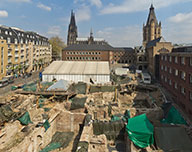 One of the most spectacular cultural projects in Cologne is presently taking shape - the Archaeological Zone and the Jewish Museum on and beneath the town-hall square. The City of Cologne and the regional government are creating a new exhibition area measuring roughly 7000 m2 within the framework of the "Regionale 2010" show. Visitors will have the opportunity of seeing monuments from the last two millennia at their original site. These include the impressive ruins of the Roman governor's palace and the fragile remains of one of the most important Jewish quarters in Europe.